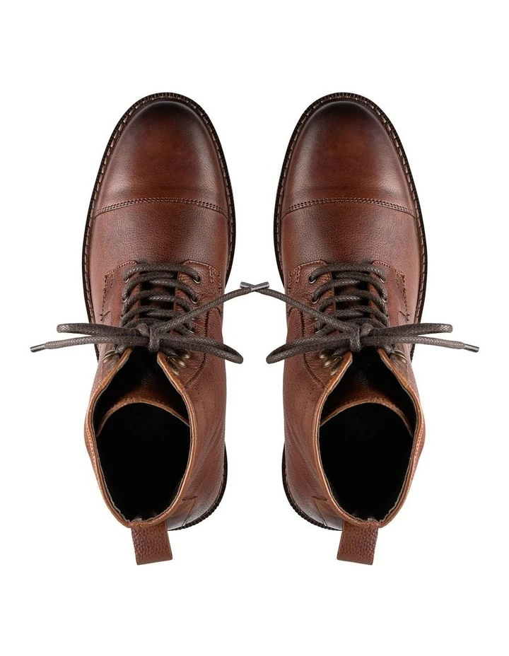 The Mack Leather Military Boot in Tan is a wardrobe staple that packs a punch. The classic lace up military style is easy to incorporate into your wardrobe, even if you are a loyal chelsea boot wearer. We think the Mack looks best with your favourite pair of worn in denim jeans and an overshirt.