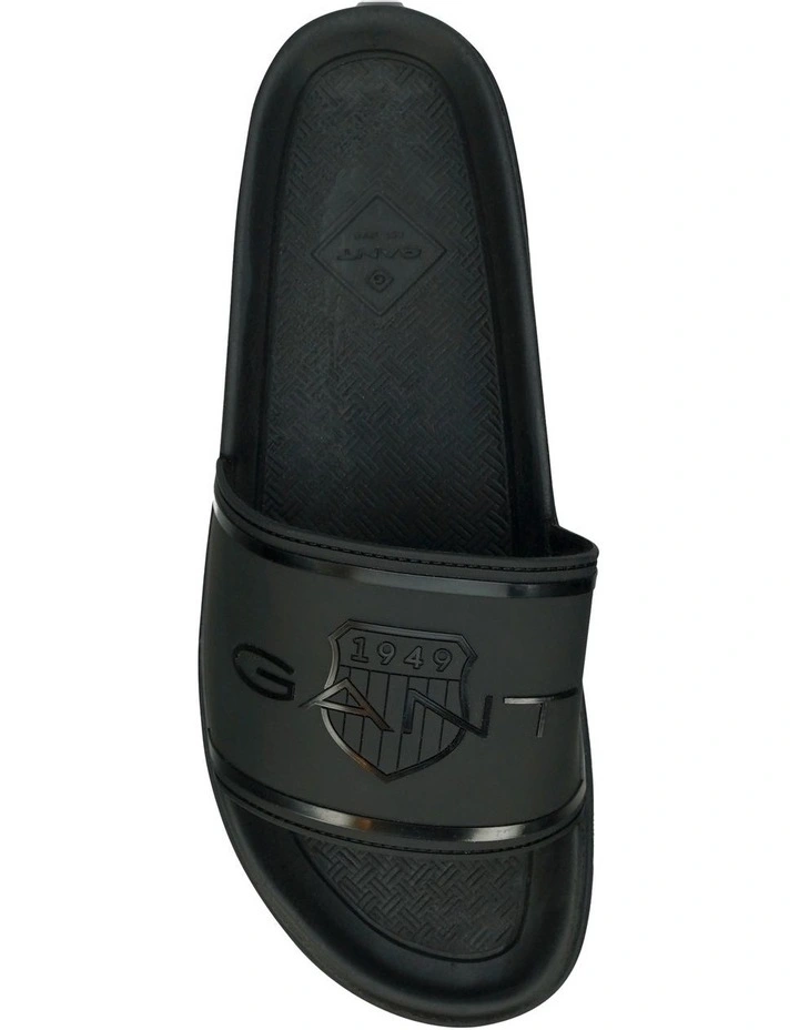 Super-light, comfortable beach slide with a wide rubber bandage. The striking branding gives the sporty look a touch of luxury. With light EVA outsole and a textile lining for great comfort.
