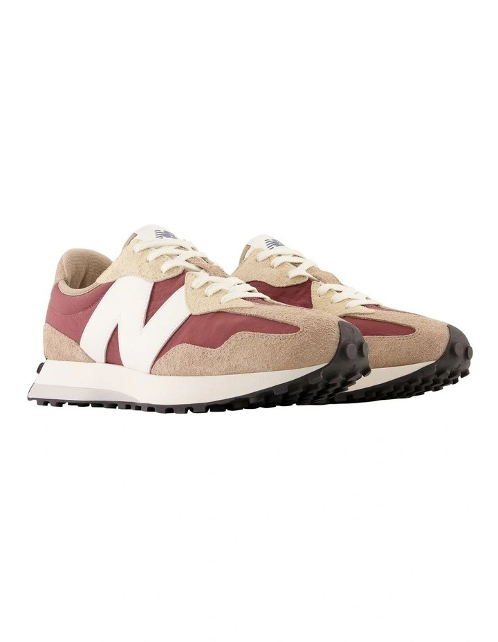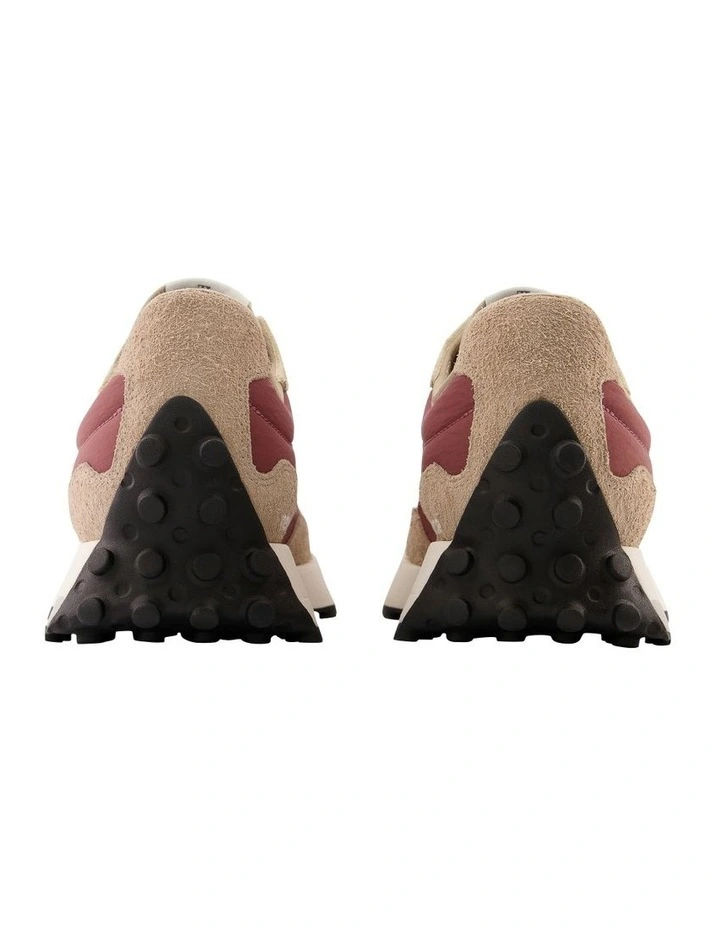 The 327 sheds new light on the 70s as a time of innovation by boldly reshaping classic design elements with a thoroughly contemporary outlook. With an angular reworking of the tried-and-true wedge silhouette, outsize, asymmetrically applied N branding, and wraparound, trail-inspired lug outsole, the 327 provides nothing less than a complete reimagination of our running heritage.