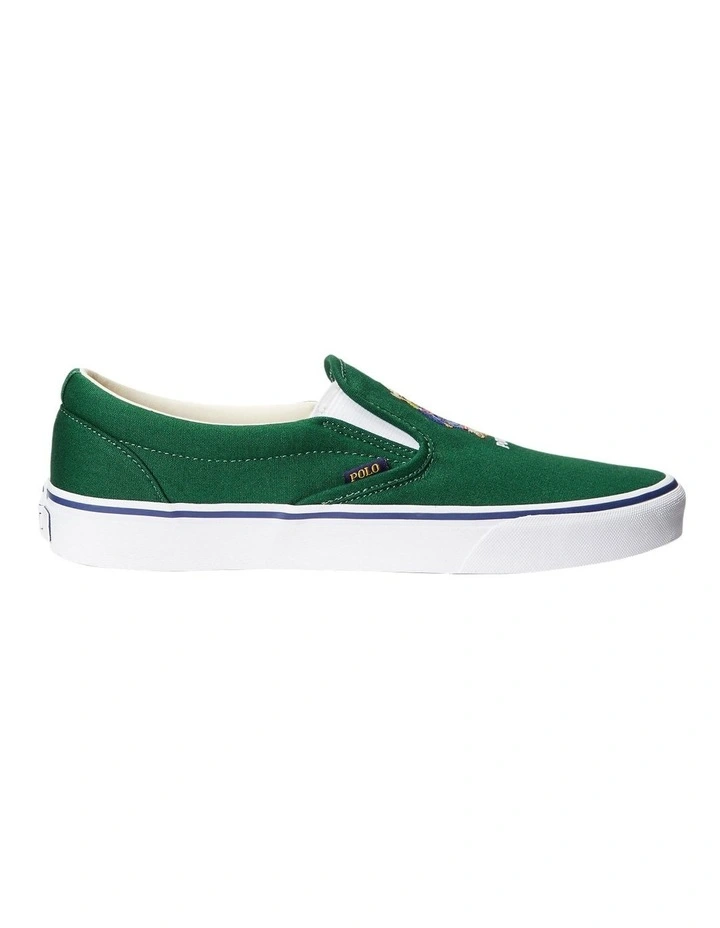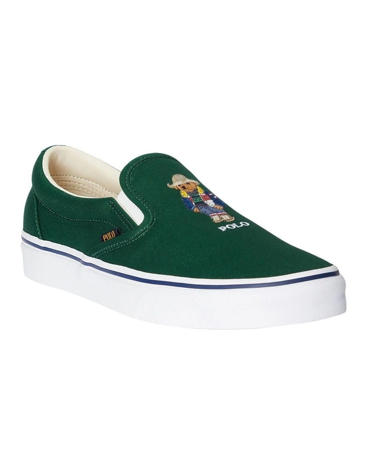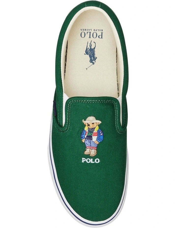 The world’s best-dressed bear accents the top of Polo’s classic slip-on sneaker. Rendered in cotton canvas, it features an updated EVA footbed for comfort with every step.